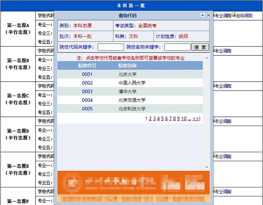 点击页面中的“查询计划”按钮,将会弹出查询计划控件,考生可在此控件内查找筛选出本批次能够填写的志愿,如下图所示: