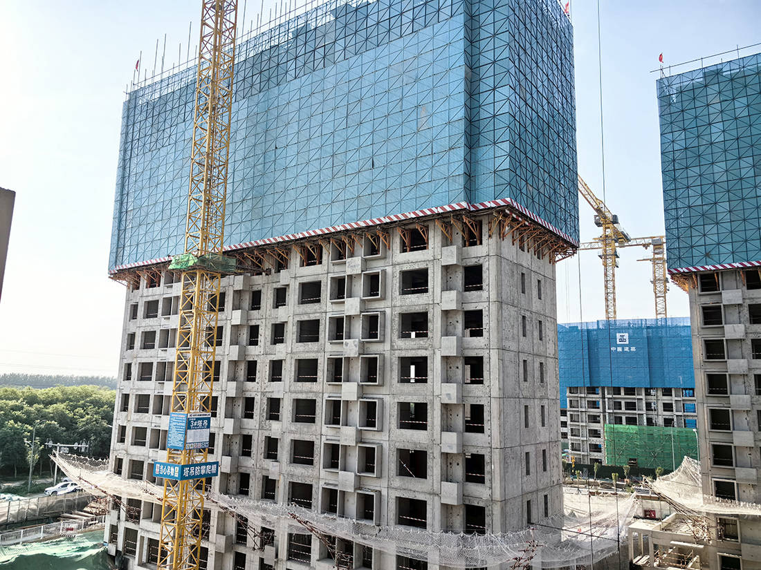 4号楼:目前已完成15层主体结构,现阶段为顶层墙体钢筋绑扎