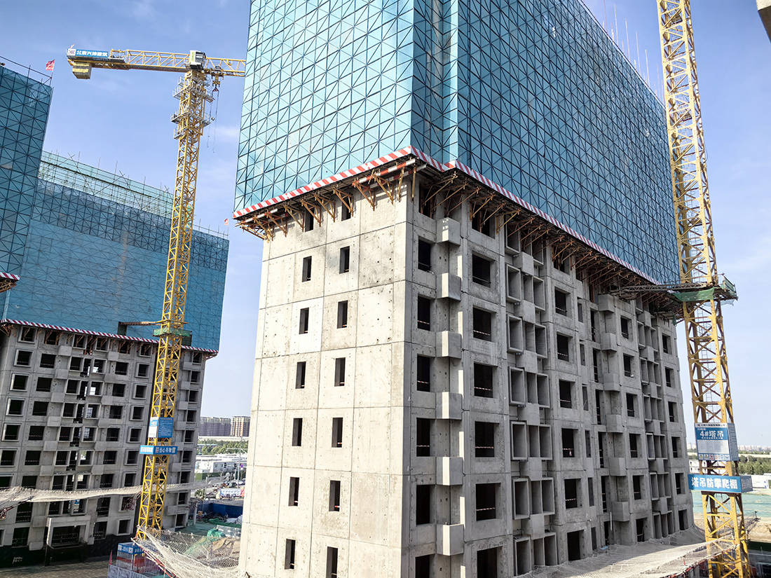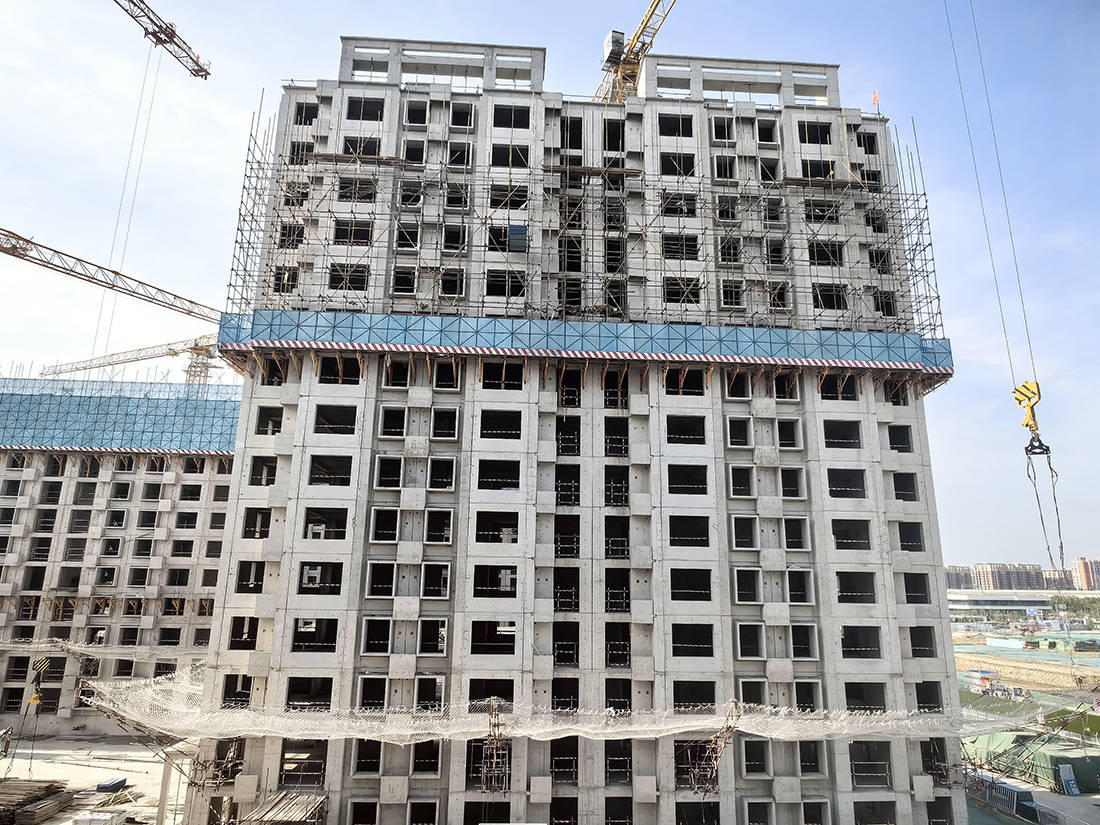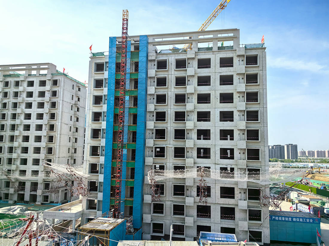 3号楼:目前已完成15层主体结构,现阶段为顶层叠合板吊装