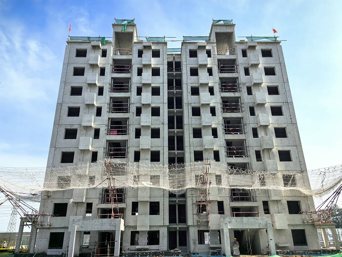6/7号楼:已完成主体结构封顶,外架未拆除