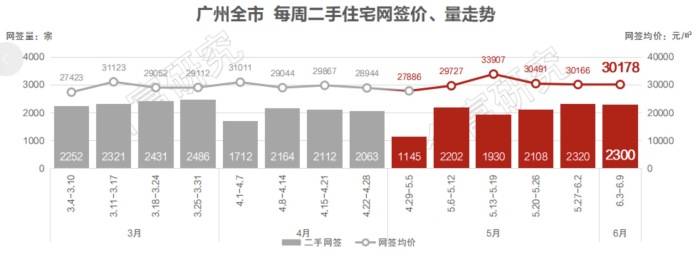 据合富研究院统计,上周(6月3日-6月9日)广州全市二手住宅的网签量维持在3000宗左右水平,网签均价为30178元/平方米。
