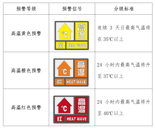 ◎ 《气象灾害预警信号及防御指南》规定高温预警信号分三级。/图:国家疾控局