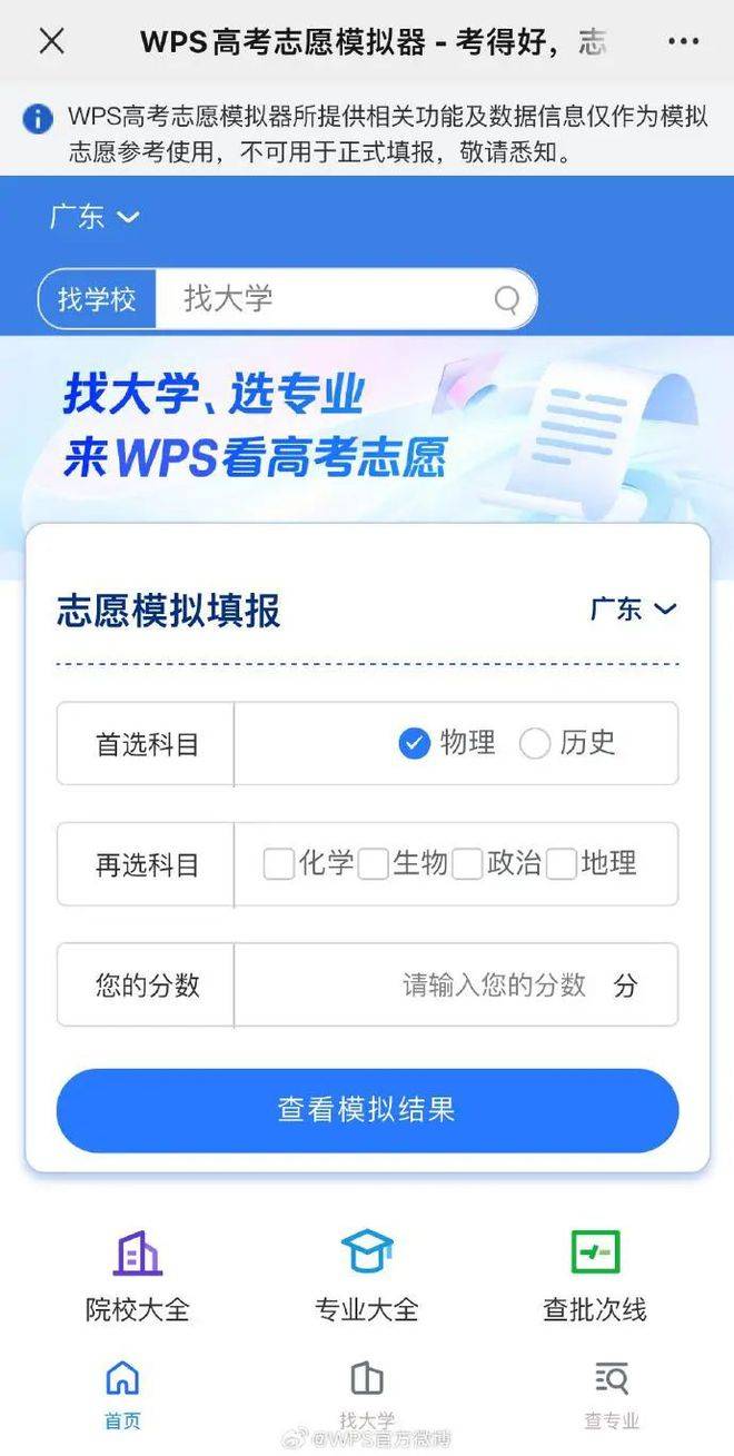 又一入局者!WPS宣布推出高考志愿模拟功能