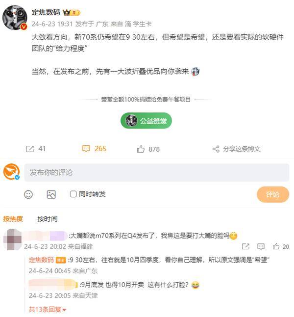 日前,数码博主“定焦数码”透露,“大致看方向,新70系仍希望在9 30左右,但希望是希望,还是要看实际的软硬件团队的‘给力程度’”。
