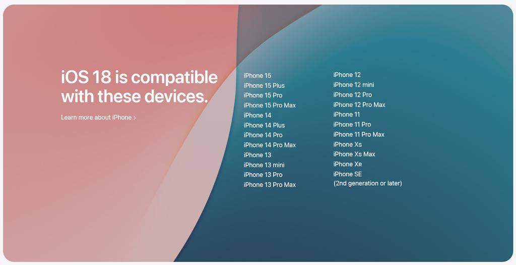 iPhone XR及以后,iPhone SE 2及以后的iPhone机型均可升级到iOS18;iPad mini 5、iPad 7及以后、iPad Air M2、iPad Pro 11英寸及以后、iPad Pro 12.9及以后、iPad Pro M4均可升级到iPadOS18。