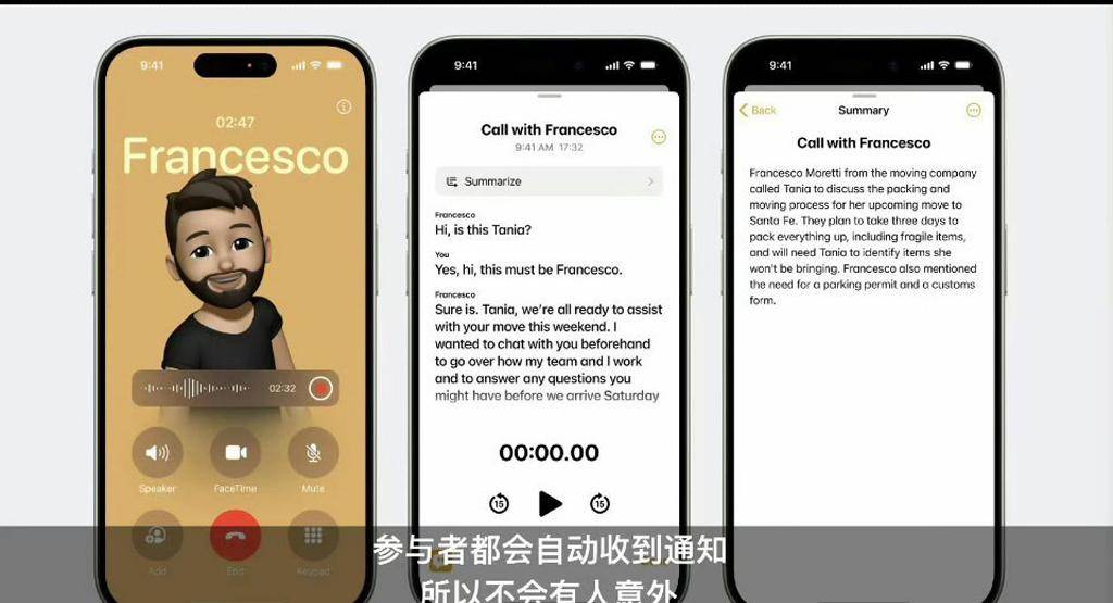 通话录音一直是安卓手机的一个必备功能,而过去苹果手机用户想要在打电话的时候保留一份录音会非常麻烦。现在iOS18终于将这一功能整合到了系统当中。