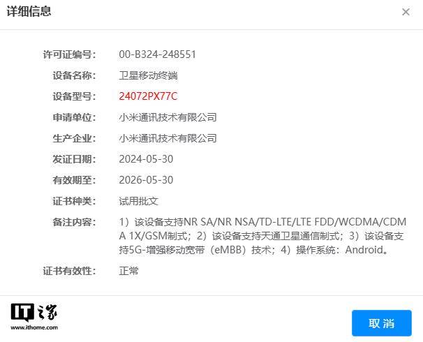 IT之家 6 月 13 日消息,现有一款型号为 24072PX77C 的小米新机通过了国家 3C 质量认证,结合之前的泄露信息以及 @数码闲聊站 确认,该机即为小米正准备发布的 MIX Fold 4 折叠屏手机。