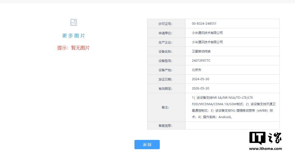 除此之外,这款机型也已经通过工信部入网审查以及无线电核准认证,显示支持天通卫星通信,支持 5G-增强移动宽带(eMBB)技术。