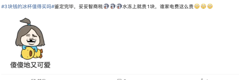 针对冰杯的价格争议,不少网友表示“性价比不高”“可能是智商税”。