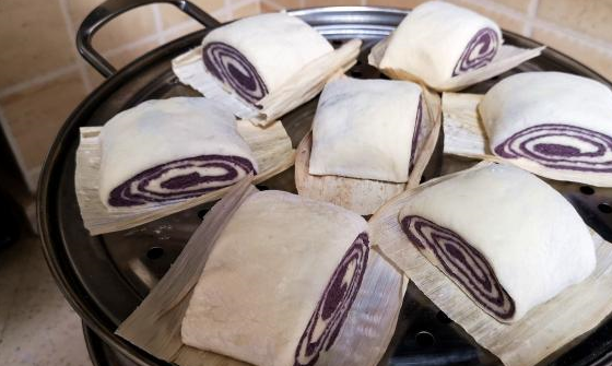 11.每一个馒头剂下面垫一个玉米叶,放在笼屉内,盖上锅盖,二次醒发10分钟,醒发10分钟后,开大火蒸,上蒸汽后蒸20分钟。
