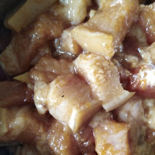 第4步、这是之前加生抽,后来发现颜色不好看,又加入了少许老抽。建议腌肉和腌糯米用老抽,和上图一对比,好明显。