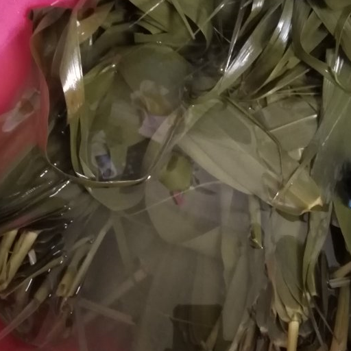 第2步、取一个大锅,放入粽叶,加入漫过粽叶的水,开大火煮,煮开后转小火慢煮。煮到粽叶颜色有一点发黄就可以了,然后盖着等它冷却。晚上饭后才开始处理粽叶,睡觉前刚好煮好。