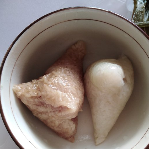 第12步、本来特别想睡觉的,闻着粽子香气又清醒了,一听到LG说可以吃了,赶紧拿碗筷夹了两个,个人比较喜欢吃肉粽。包了两种:一种糯米粽,配白糖吃。一种肉馅粽。