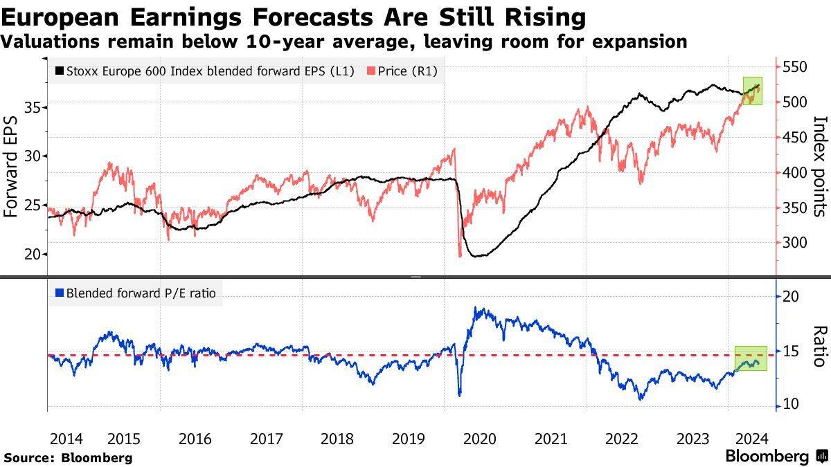 智通财经APP获悉,随着欧元区通胀降温速度快于美国,欧洲央行预计将在周四的政策会议上首次先于美联储启动降息周期,这可能会成为推动欧洲股市再创新高的催化剂。与此同时,欧元区经济增长保持弹性,企业盈利前景也有所改善。因此,主要资产管理公司和市场策略师表示,尽管美联储降息的时机仍不确定,泛欧斯托克600指数在今年迄今创纪录的涨势基础上仍有继续上涨的空间。