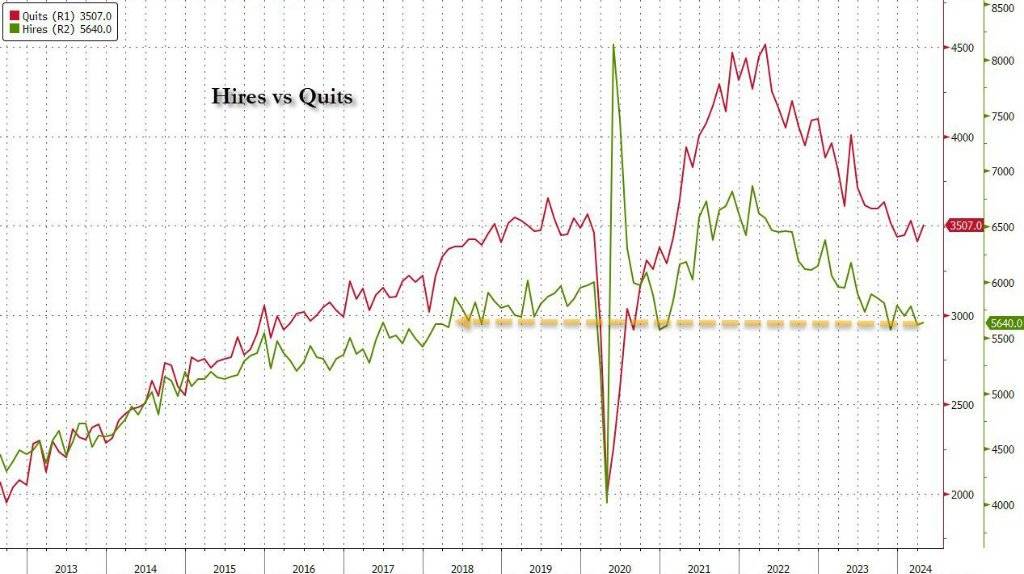 美国4月JOLTS职位空缺805.9万人,创2021年2月以来的最低水平,当时职位空缺数不足800万大关,预期为835万人,低于媒体调查的所有经济学家的预估,3月前值从848.8万人下修至836万人。